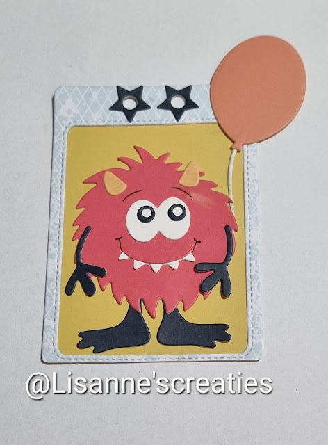 In het midden van de kaart komt een label met daarop één van de leuke monsters van Joset's collectie.